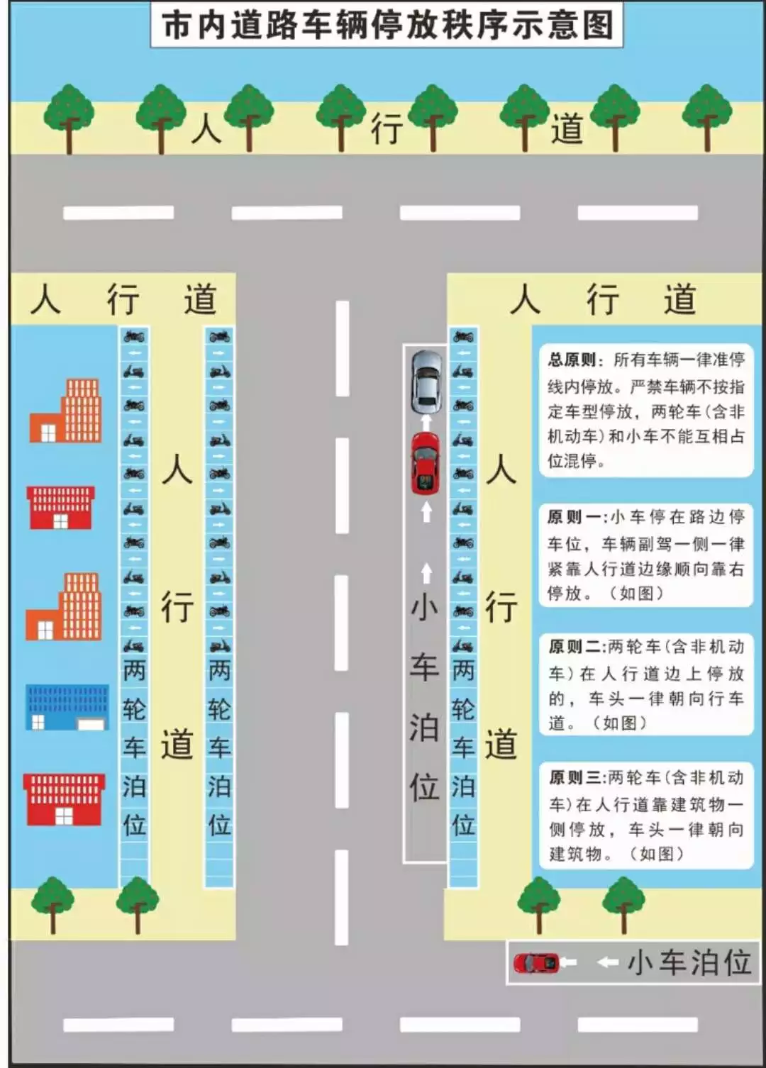 【图】交警与城管联合行动,对路边乱停乱放的共享单车进行整治。 机动车的停放应当遵守下列规定: (一)在停车场或者交通标志、标线规定的道路停车泊位内停放; (二)在道路停车泊位内,按顺行方向停放,车身不得超出停车泊位; (三)借道进出停车场或者道路停车泊位的,不得妨碍其他车辆或者行人正常通行。 此外,机动车禁止在人行道上停放机动车,依法施划的停车泊位除外。 停车的正确姿势: