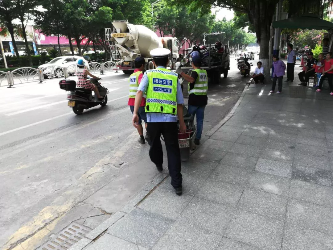 【图】交警对乱停乱放车辆开处罚单。 对乱停放的两轮车进行整治 6月11日,万秀交警对怡景市场、西堤一路红会医院对出斑马线等路段两轮车乱停放行为开展全面的清理查纠。
