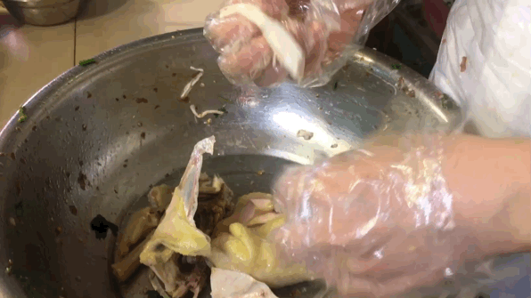 手撕鸡 或许是从小练就的烹饪技艺,而且心中有着美食梦的加持,兰姐很快就学会手撕鸡的制作方法。兰姐介绍道,为了保持鸡的原汁原味,光鸡要用白开水进行冷热交替浸熟,这样做出来的鸡皮才会爽脆。而且手撕鸡冰冻保存口味更佳,所以兰姐用一个专门的保温桶来保持低温装鸡。