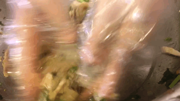 斩鸡,撕鸡,放调味料搅拌,整个过程一气呵成。看着眼前搅拌好的成品手撕鸡,一股混杂着鸡肉、麻油、香菜、香葱、蒜头的香味飘进鼻孔,腹中空空如也的食侠,感受到胃里馋虫狂动,口水差点流下来。